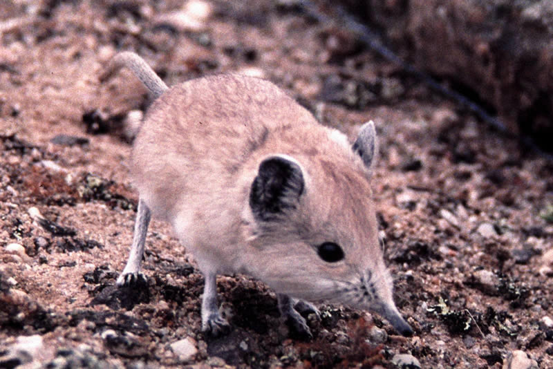 The round-eared sengis or elephant-shrews (genus Macroscelides) exhibit striking pelage variation throughout their ranges. Over ten taxonomic names have been proposed to describe this variation, but currently only two taxa are recognized (M. proboscideus proboscideus and M. p. flavicaudatus). Based on the geographic distribution, morphology, and mitochondrial DNA sequence of these taxa, the current taxonomy has recently been evaluated. Mitochondrial haplotypes of these two taxa are reciprocally monophyletic with over 13% uncorrected sequence divergence between them. PCA analysis of 14 morphological characters (mostly cranial) grouped the two taxa into non-overlapping clusters, and body mass alone is a relatively reliable distinguishing character throughout much of Macroscelides range. Although fieldworkers were unable to find sympatric populations, the two taxa were found within 50 km of each other, and genetic analysis showed no evidence of gene flow. Based upon corroborating genetic data, morphological data, near sympatry with no evidence of gene flow, and differences in habitat use, the two forms have been elevated to full species: The Namib round-eared sengi (M. flavicaudatus) is endemic to Namibia, whereas the Karoo round-eared sengi (M. proboscideus) is found in Namibia, Botswana, and South Africa. Details can be found in: Dumbacher, J.P., G.B. Rathbun, H.A. Smit, and S.J. Eiseb. 2012. Phylogeny and taxonomy of the round-eared sengis or elephant-shrews, genus Macroscelides (Mammalia, Afrotheria, Macroscelidea). PLoS ONE 7(3):e32410 (12 pp + 4 pp. supplement table).